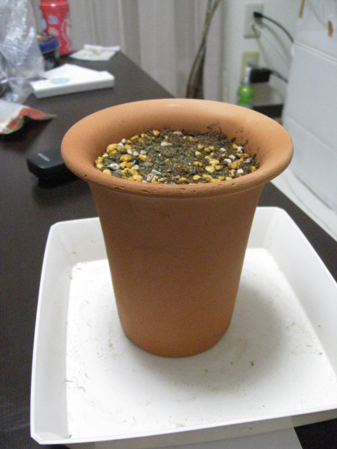 用土は軽石・鹿沼土・ピートモス・川砂を適当にブレンドしたものです。