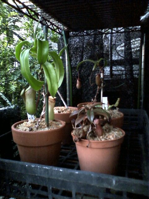 そろそろ外の気温が高くなってきましたので外にネペンテス類を出しました。遮光ネットで囲ってます。