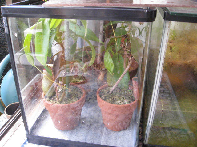 ネペンテスは室内の水槽に入れました。